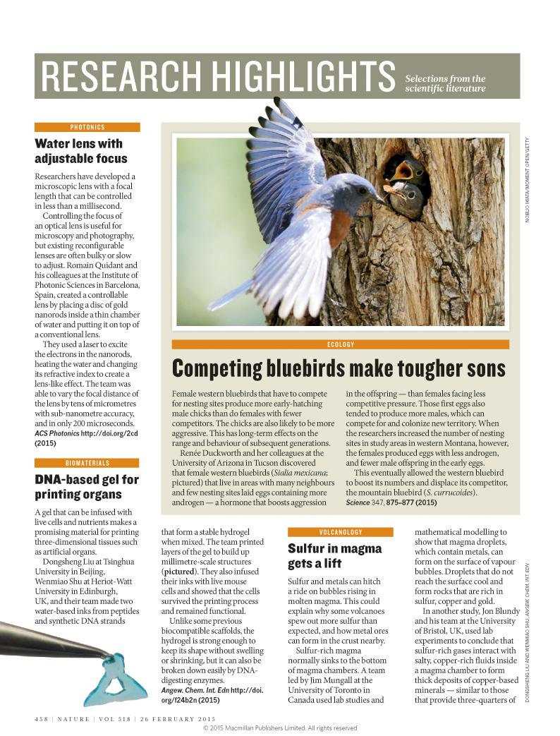 最近,劉冬生課題組與英國瓦特大學舒文淼(Will Shu)的合作項目獲得突破性成就,他們成功地將DNA水凝膠材料應用于活細胞的3D打印,其論文發表在《德國應用化學》并予重點報道。2月26日,《自然》雜志也報導了其研究成果,并評價該材料為“一種非常有前景的打印三維組織和人工器官的材料。”