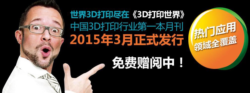 2月9日,珠海再生時代宣布,將于2015年3月起發(fā)售中國3D打印行業(yè)第一本月刊,該月刊已確定命名為《3D打印世界》,預(yù)定每月一期,限量發(fā)售2萬本。內(nèi)容覆蓋醫(yī)療、模具、汽車等各個應(yīng)用領(lǐng)域。屆時,也將同步發(fā)售電子版,并將于各大互聯(lián)網(wǎng)媒體合作。
