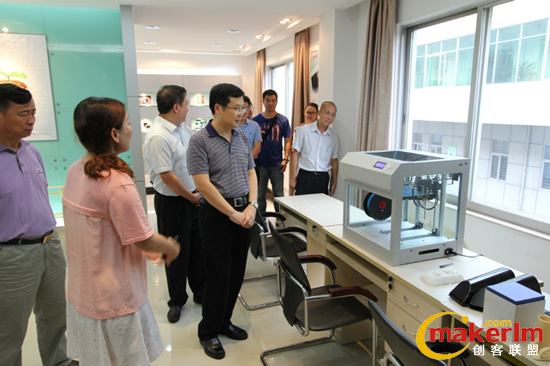 2015年5月22日張科常務副市長赴常平檢查創新驅動工作,下午3點30分來到創客聯盟視察創客3D打印服務平臺,并對創客聯盟開展的工作,做指導與建議。