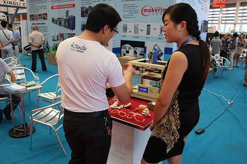 據了解,在3D打印特裝區中脫穎而出的創客聯盟www.makerlm.com,成立于2014年3月,經過短短半年時間的努力,現已成為國內領先的“創意-生產-銷售”一條龍設計平臺,為設計師和企業搭建一個呈現創意、產品推廣的優秀平臺。而由東莞3D打印技術產業聯盟主辦、東莞市經濟和信息化局和東莞市科學技術局作指導單位的2014年中國·東莞“智谷杯”3D打印創意設計大賽,也于9月10日正式啟動,并進行創意征集,為市民獻上一場主題為“創意3D,精彩智造”的3D打印創意設計盛會。本次展示的3D巧克力打印機便是創客聯盟近期推出的優秀設計力作。