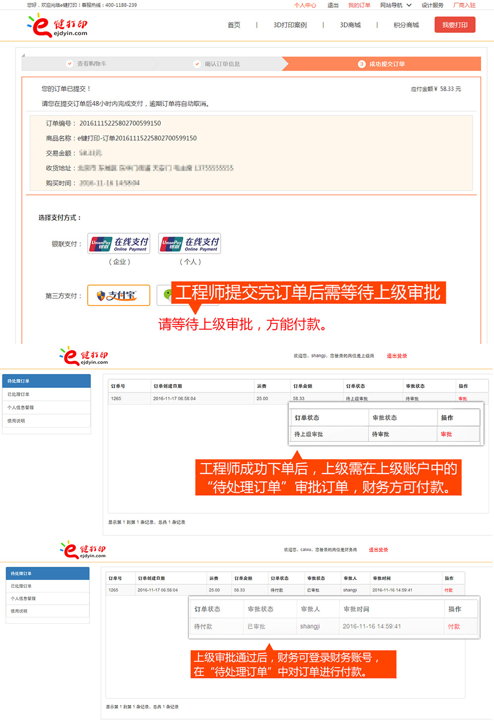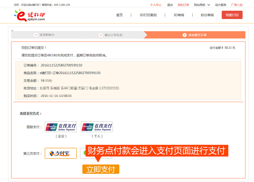 - 最新成交 深圳市3D打印訂單 138****2618 訂單金額¥637.56元 已付款成功